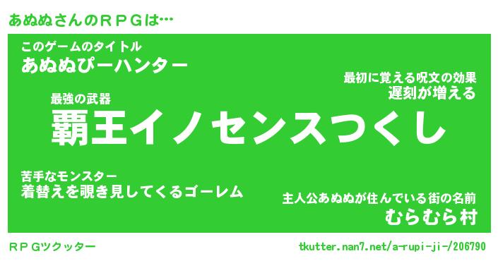| ファンタジー風あだ名 | 『アヌフェル』『エターナルアヌヌー』 |