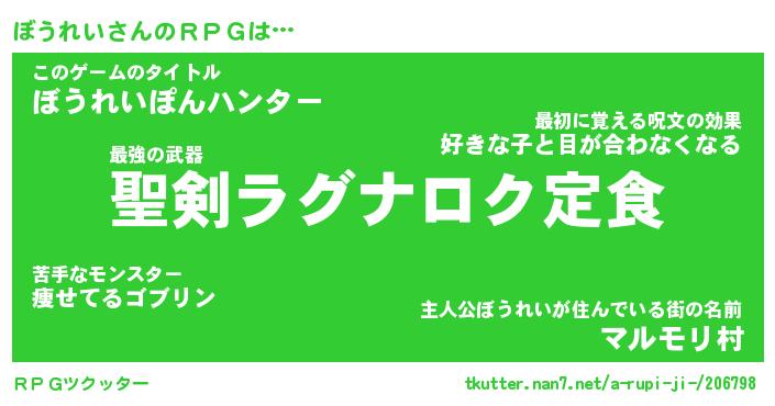| 男性向けラノベタイトル風あだ名 | 『ぼうれいの憂鬱』 |