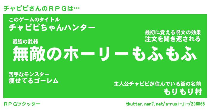 伝説のあだ名 | 『封印されし傭兵チャピピ』 |