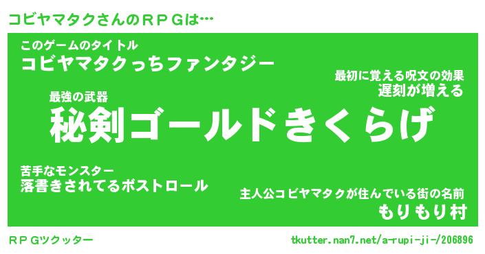 | 男性向けラノベタイトル風あだ名 | 『コビヤマタクの憂鬱』 |