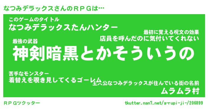 | 男性向けラノベタイトル風あだ名 | 『なつみデラックスの憂鬱』 |