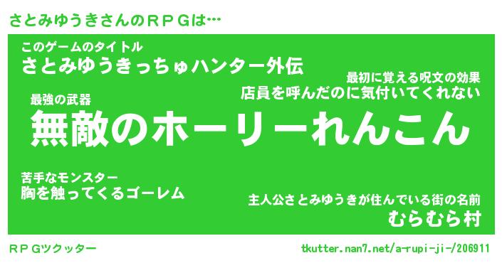 | ヒーロー風カッコイイあだ名 | 『スーパーサトミユウキ』『幻影騎士サト』 |