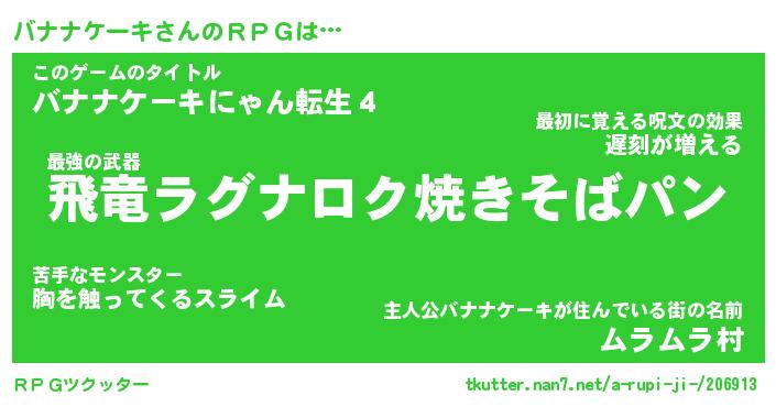 | 男性向けラノベタイトル風あだ名 | 『バナナケーキアートオンライン』 |