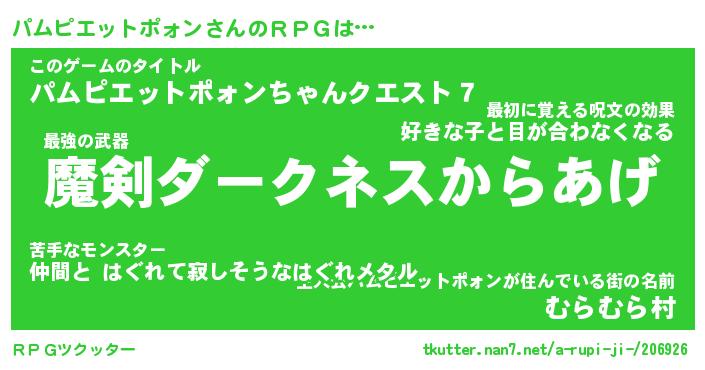 男性向けラノベタイトル風あだ名 | 『パムピエットポォンの憂鬱』 |