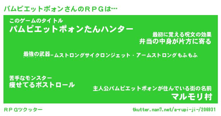 | 男性向けラノベタイトル風あだ名 | 『パムピエットポォンアートオンライン』 |