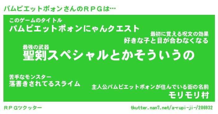 | 男性向けラノベタイトル風あだ名 | 『パムピエットポォンの憂鬱』 |