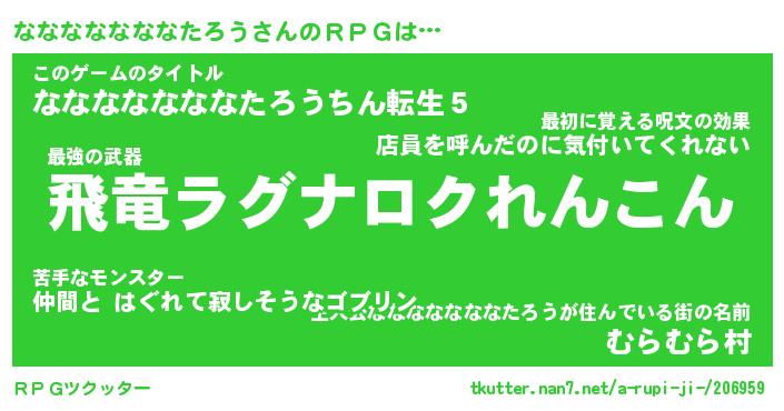 男性向けラノベタイトル風あだ名 | 『ナナナナナナナタロウアートオンライン』 |