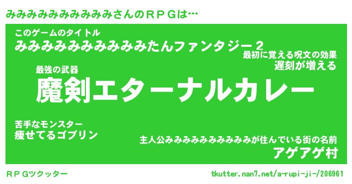 女子向けラノベタイトル風あだ名 | 『(仮)みみみみみみみみみみのやんごとなき事情』 |