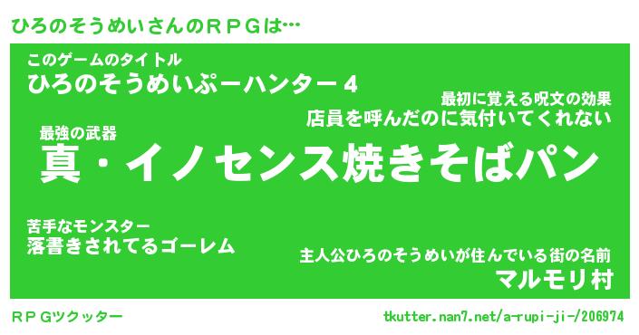| 伝説のあだ名 | 『封印されしスナイパーひろのそうめい』 |