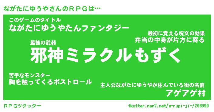 伝説のあだ名 | 『封印されし竜騎士ながたにゆうや』 |
