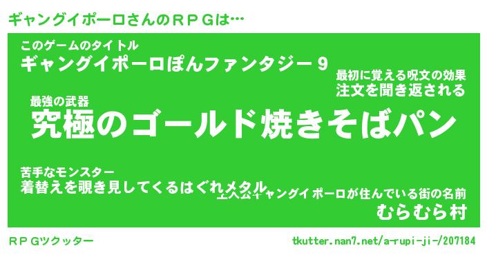 男性向けラノベタイトル風あだ名 | 『ギャングイポーロアートオンライン』 |