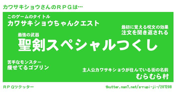 | 伝説のあだ名 | 『伝説の竜騎士カワサキショウ』 |