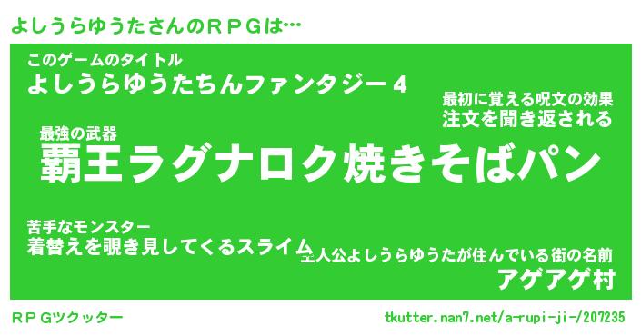 | 意味不明あだ名 | 『ペロリンよしうらゆうた』 |