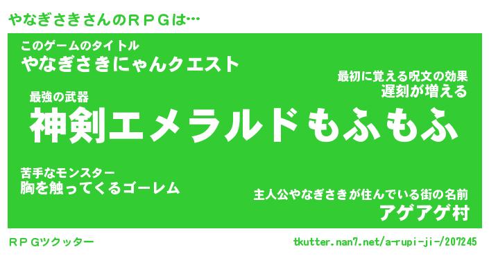 ファンタジー風あだ名 | 『ヤナフェル』『エターナルヤナギサキー』 |