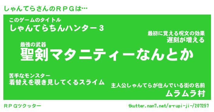 伝説のあだ名 | 『伝説のスナイパーしゃんてら』 |