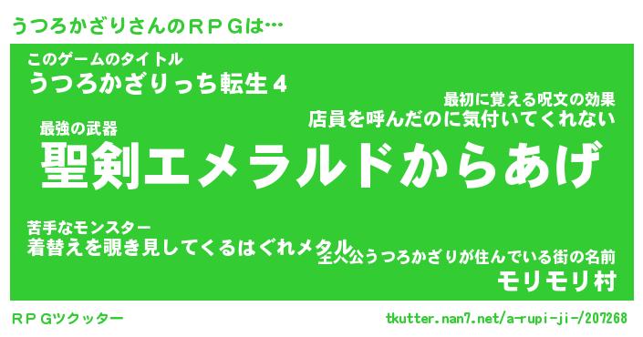 | 胡散臭い通販商品みたいなあだ名 | 『必ず成功する霊験あらたかなお札…その名も「うつろかざり」』 |