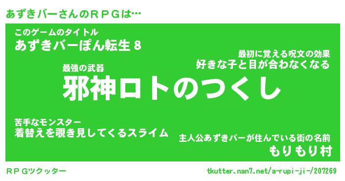 | 男性向けラノベタイトル風あだ名 | 『アズキバーアートオンライン』 |