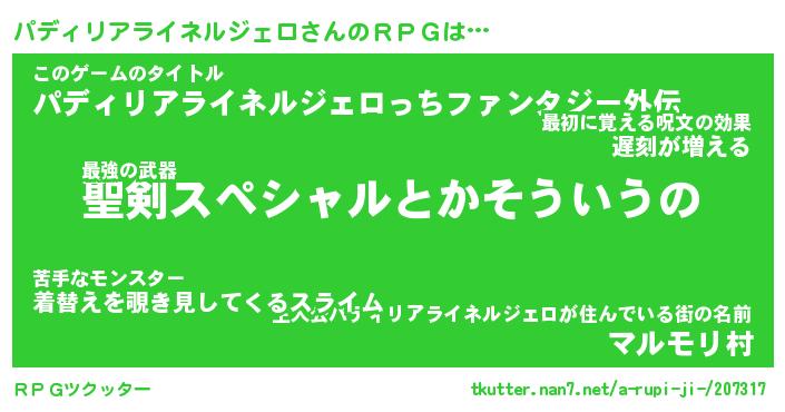 | 男性向けラノベタイトル風あだ名 | 『パディリアライネルジェロの憂鬱』 |