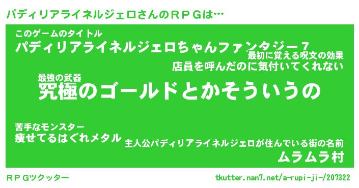 | 男性向けラノベタイトル風あだ名 | 『パディリアライネルジェロの憂鬱』 |