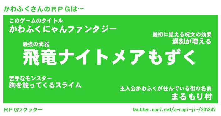 | 男性向けラノベタイトル風あだ名 | 『カワフクアートオンライン』 |
