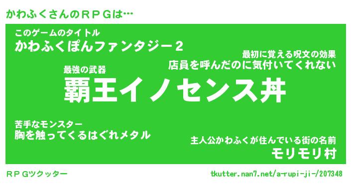 | ファンタジー風あだ名 | 『カワフェル』『エターナルカワフクー』 |