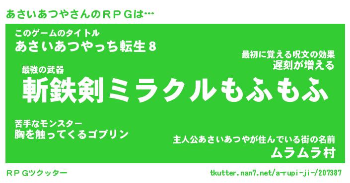 ヒーロー風カッコイイあだ名 | 『スーパーアサイアツヤ』『幻影騎士アサ』 |