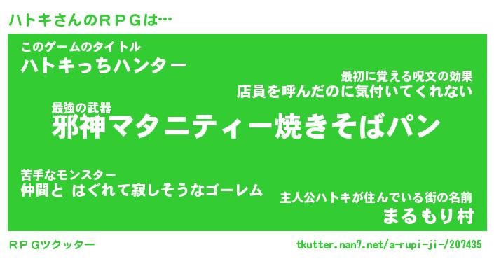 | 男性向けラノベタイトル風あだ名 | 『ハトキアートオンライン』 |