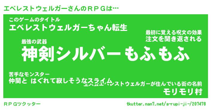 | 男性向けラノベタイトル風あだ名 | 『エベレストウェルガーの憂鬱』 |