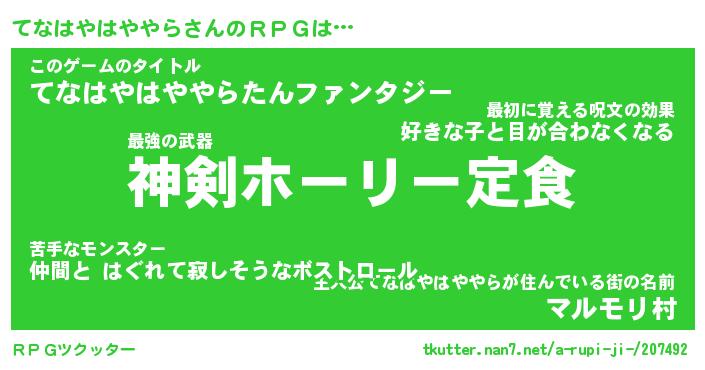 | 男性向けラノベタイトル風あだ名 | 『てなはやはややらの憂鬱』 |