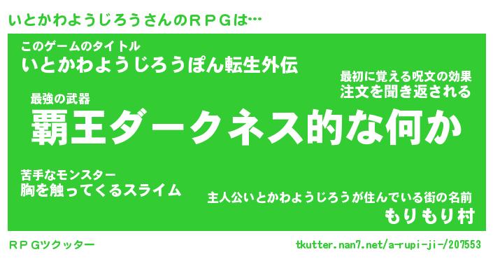 | 男性向けラノベタイトル風あだ名 | 『イトカワヨウジロウアートオンライン』 |