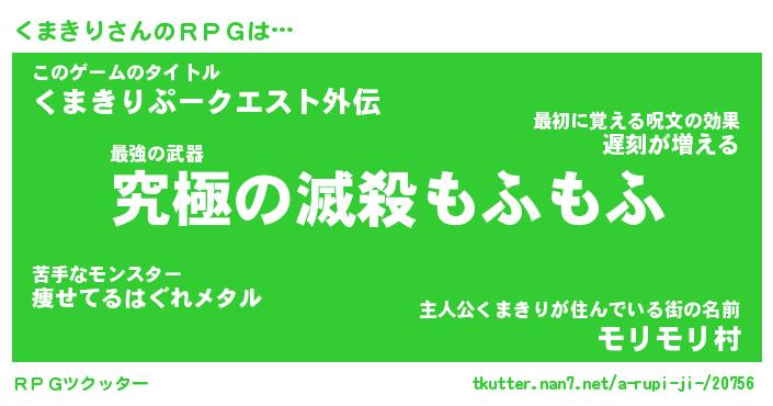 | ファンタジー風あだ名 | 『クマフェル』『エターナルクマキリー』 |