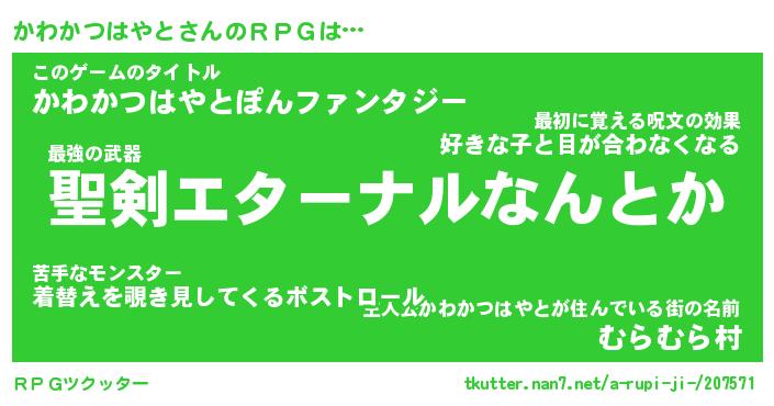 | 胡散臭い通販商品みたいなあだ名 | 『必ず成功する水晶球…その名も「かわかつはやと」』 |