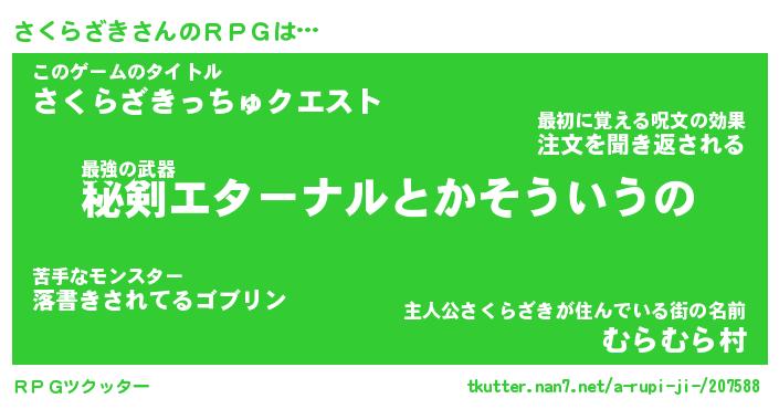 | ファンタジー風あだ名 | 『サクフェル』『エターナルサクラザキー』 |