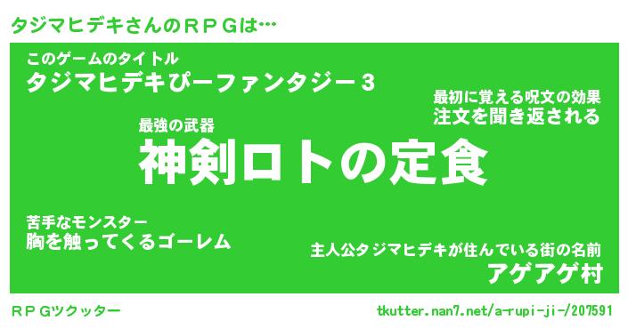 | 男性向けラノベタイトル風あだ名 | 『タジマヒデキの憂鬱』 |