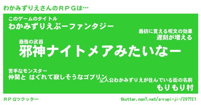 | 男性向けラノベタイトル風あだ名 | 『ワカミズリエアートオンライン』 |