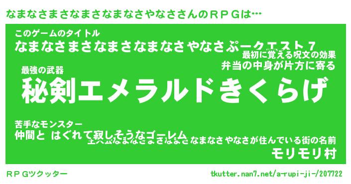 | 料理風あだ名 | 『ほっこり♪なまなさまさなまさなまなさやなさの味噌そぼろ煮』 |