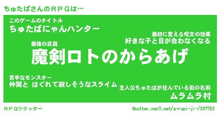 | ヒーロー風カッコイイあだ名 | 『スーパーチュタバ』『幻影騎士チュ』 |