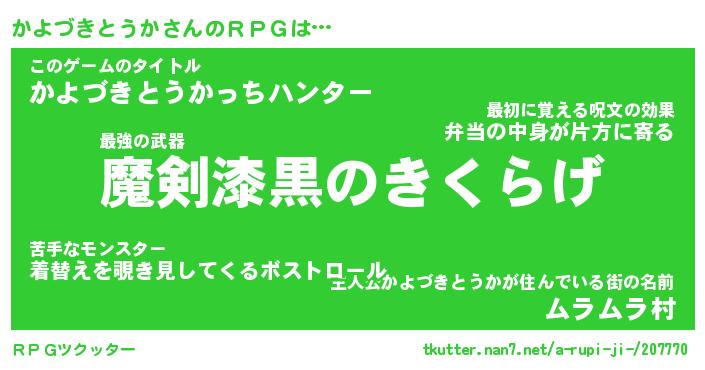 | 胡散臭い通販商品みたいなあだ名 | 『必ず成功する霊験あらたかなお札…その名も「かよづきとうか」』 |
