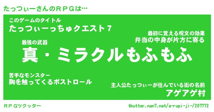 | ファンタジー風あだ名 | 『タッフェル』『エターナルタッツィーー』 |