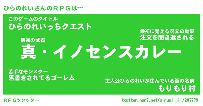 | ツイッター | ひらのれいさんのツイッターID『namakemono_nyan』 |