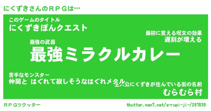 | ヒーロー風カッコイイあだ名 | 『スーパーニクズキ』『魔戒騎士ニク』 |