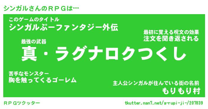 | ファンタジー風あだ名 | 『シンフェル』『エターナルシンガルー』 |
