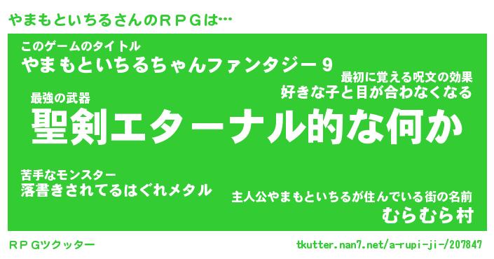 | 胡散臭い通販商品みたいなあだ名 | 『必ず成功する水晶球…その名も「やまもといちる」』 |