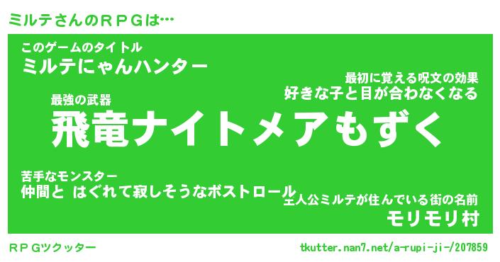 | ファンタジー風あだ名 | 『ミルフェル』『エターナルミルテー』 |