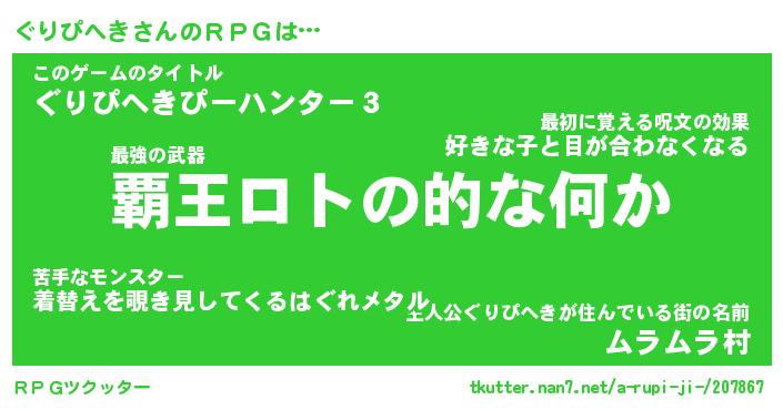 | 男性向けラノベタイトル風あだ名 | 『グリピヘキアートオンライン』 |