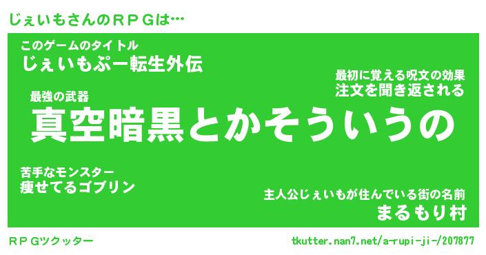 | 胡散臭い通販商品みたいなあだ名 | 『億万長者になれる水晶球…その名も「じぇいも」』 |