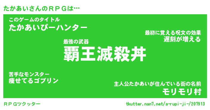 | 男性向けラノベタイトル風あだ名 | 『タカアイアートオンライン』 |