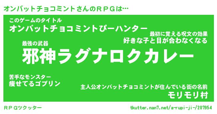 | 伝説のあだ名 | 『封印されし竜騎士オンバットチョコミント』 |