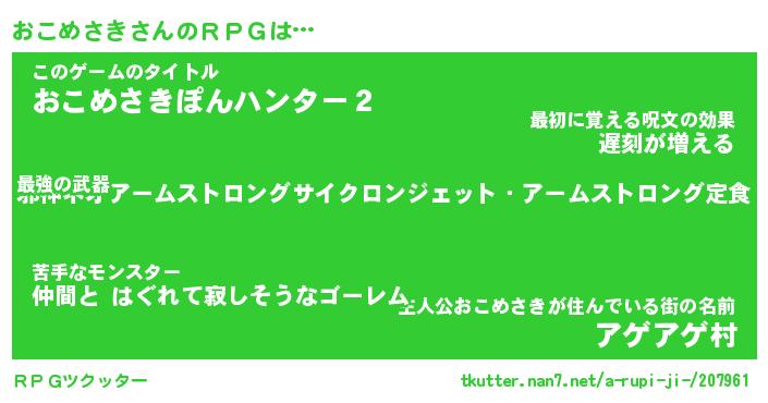 | ファンタジー風あだ名 | 『オコフェル』『エターナルオコメサキー』 |