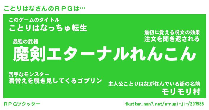 | ファンタジー風あだ名 | 『コトフェル』『エターナルコトリハナー』 |